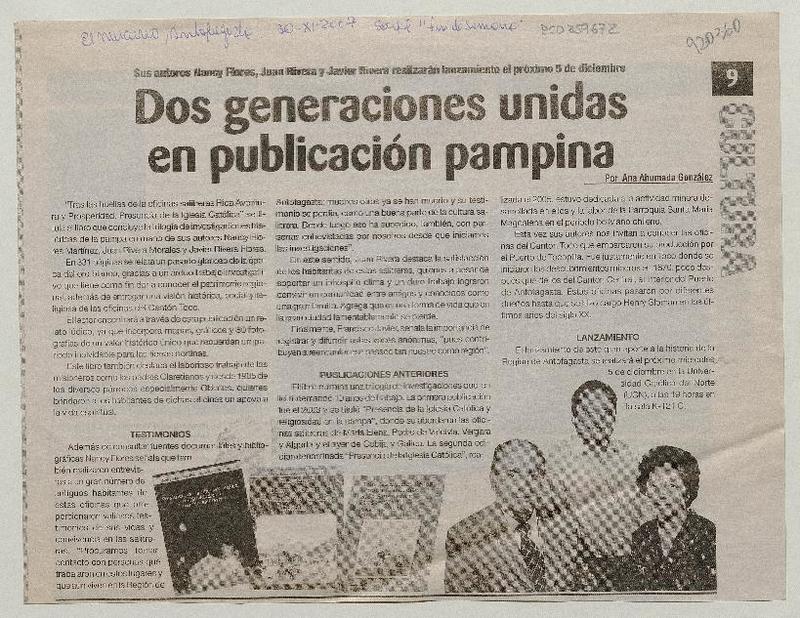 Dos generaciones unidas en publicación pampina [artículo]Ana Ahumada González.