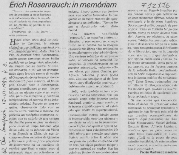 Erich Rosenrauch, in memóriam [artículo] Pacián Martínez Elissetche.