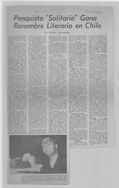Penquista "solitario" gana renombre literario en Chile: [entrevista] [artículo] Salvador Schwartzmann.