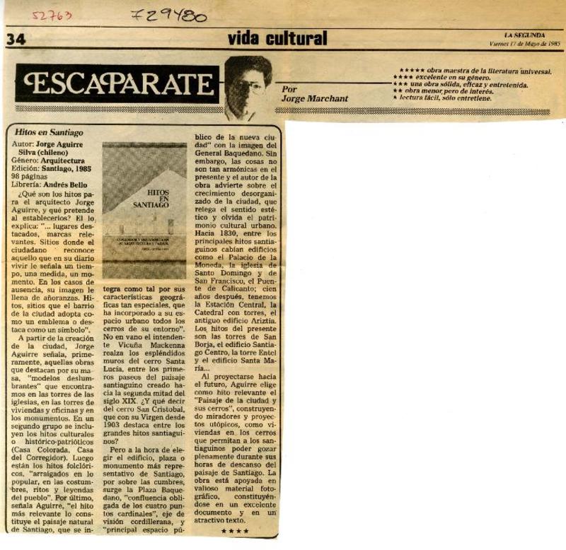 Hitos en Santiago [artículo] Efraín Szmulewicz.