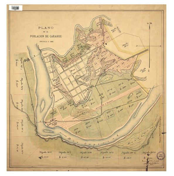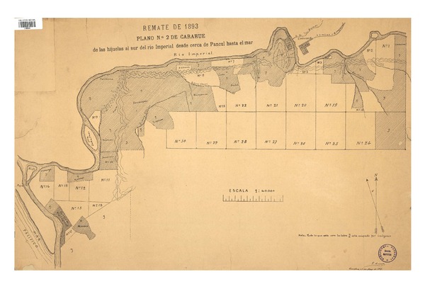 Remate de 1893 plano no. 2 de Carahue de las hijuelas al sur del Río Imperial desde cerca de Pancul hasta el mar. [material cartográfico] :
