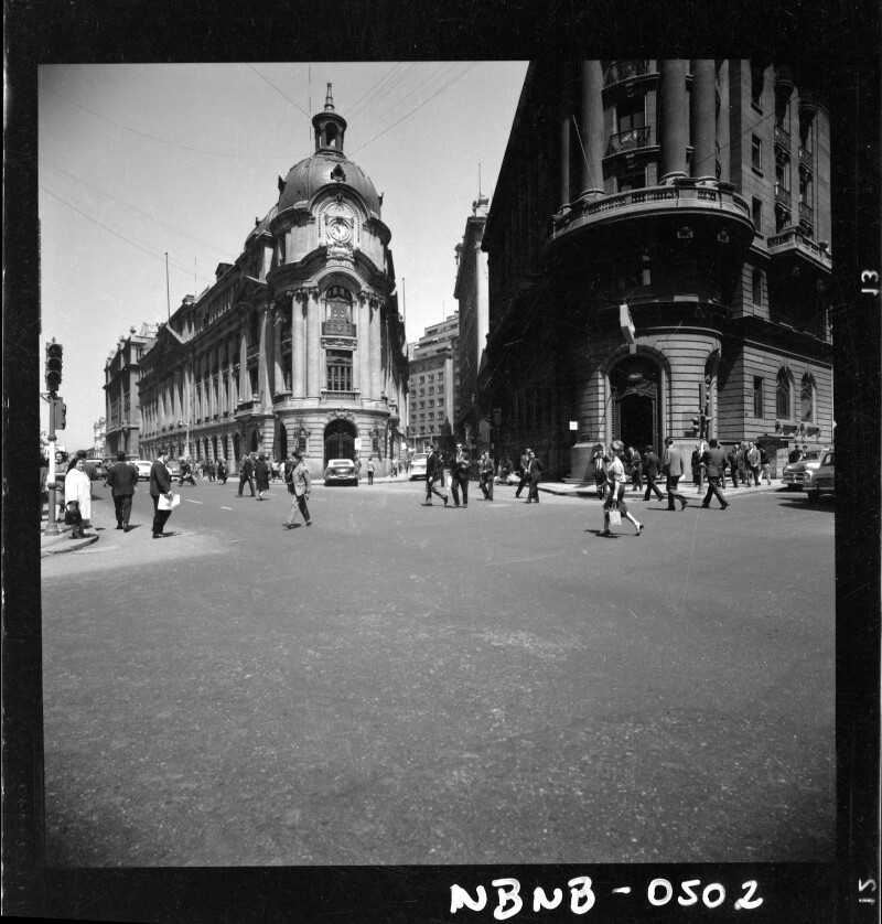 [Vista de edificio de la Bolsa de Comercio de Santiago y calles aledañas] [fotografía] Antonio Quintana.