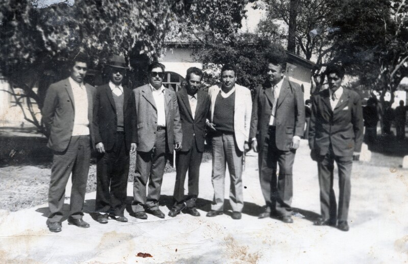 Dirigentes en entrega de domino de parcelas : Laureano Herrera, Lúpido Pereira, Rumildo Ahumada, Adam Jara, Carlos Urbina, Cupertino Salinas, Sergio Herrera [Fotografía].