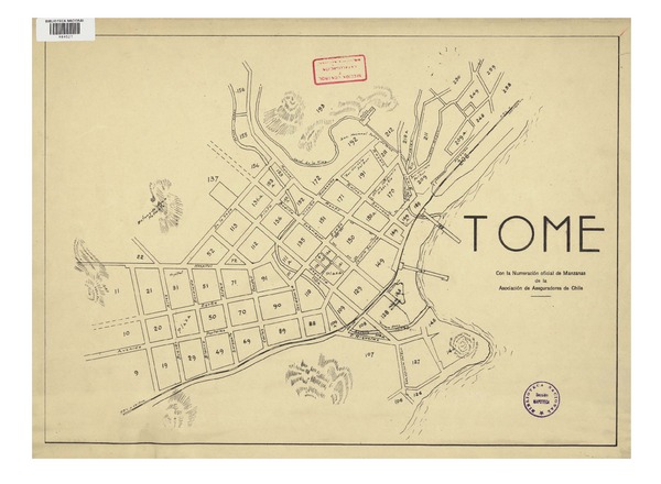 Tomé con la numeración oficial de manzanas [material cartográfico] : de la Asociación de Aseguradores de Chile.