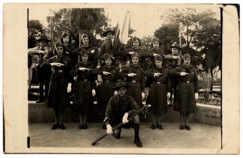 [Grupo scout en plaza de La Ligua] [fotografía] [Fotografía de Salvador Callejas Cortés].