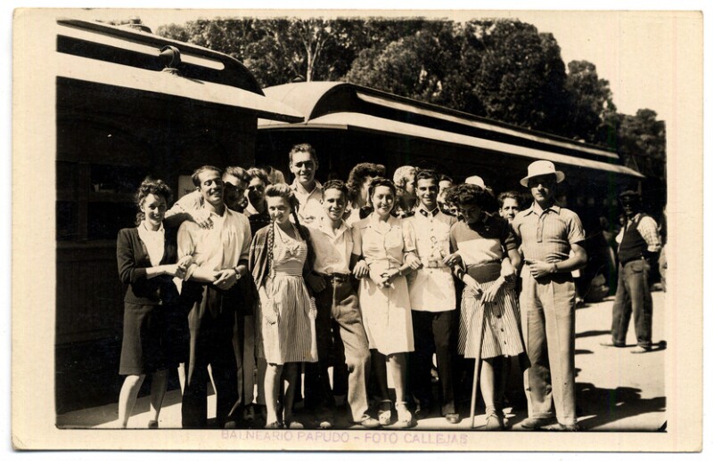 [Grupo de personas en Estación de tren de Papudo] [fotografía] [Fotografía de Salvador Callejas Cortés].