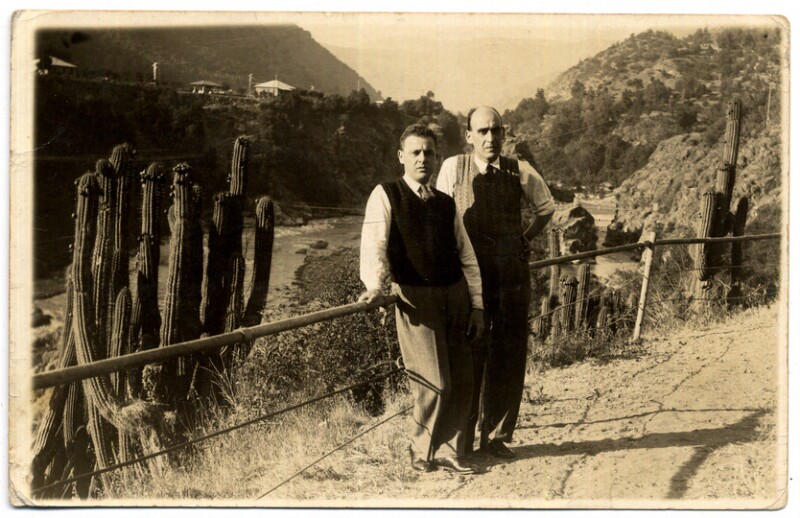 [Hombres en mirador a balneario termal de Cauquenes] [fotografía] [Fotografía de Francisco Bley].