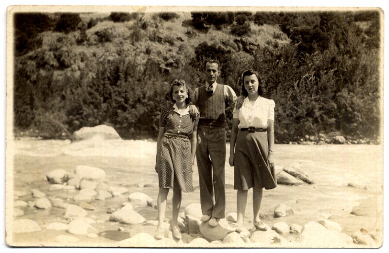 [Grupo familiar en las rocas en las Termas de Chillán] [fotografía] [Fotografía de Francisco Bley].