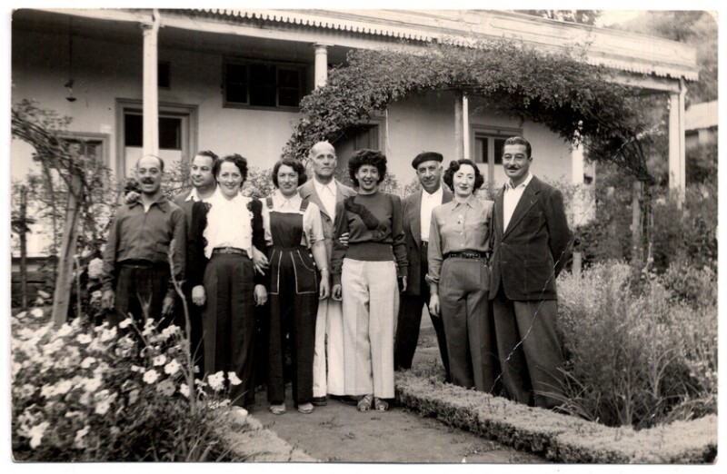 [Grupo de personas adultas en jardín de casa estilo colonial] [fotografía] [Fotografía de Francisco Bley].