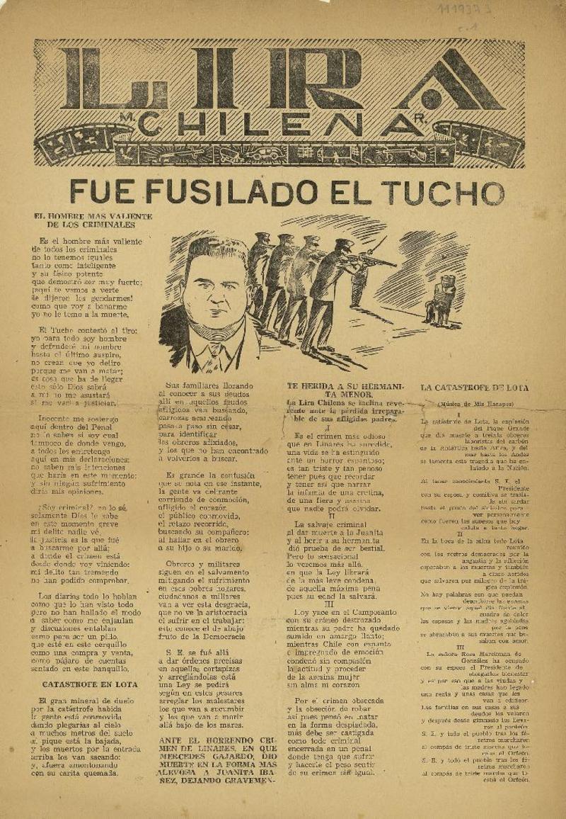 El padre que ultimó al hijo en Rengo está condenado a muerte ; Testamento del infeliz fusilado Ismael Vergara, escrito en su calabozo Rosa Araneda.