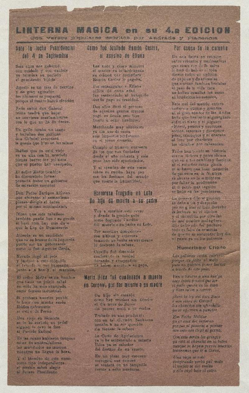 Linterna Magica en su 4.a edicion con versos populares escritos por Andrade y Placencia.