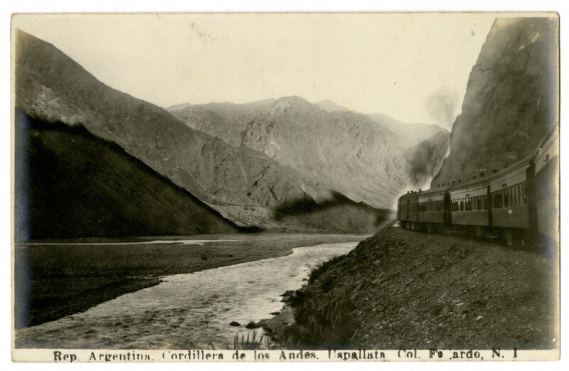 Historia - Descripciones y viajes - Fotografías - Los Andes (Chile) - Tarjetas postales - Cordillera de los Andes - Cordillera de Los Andes - Ferrocarril Trasandino Chileno - Ingeniería de ferrocarriles - Ferrocarril Trasandino Argentino - San Lorenzo del Valle de Uspallata - Uspallata (Argentina)