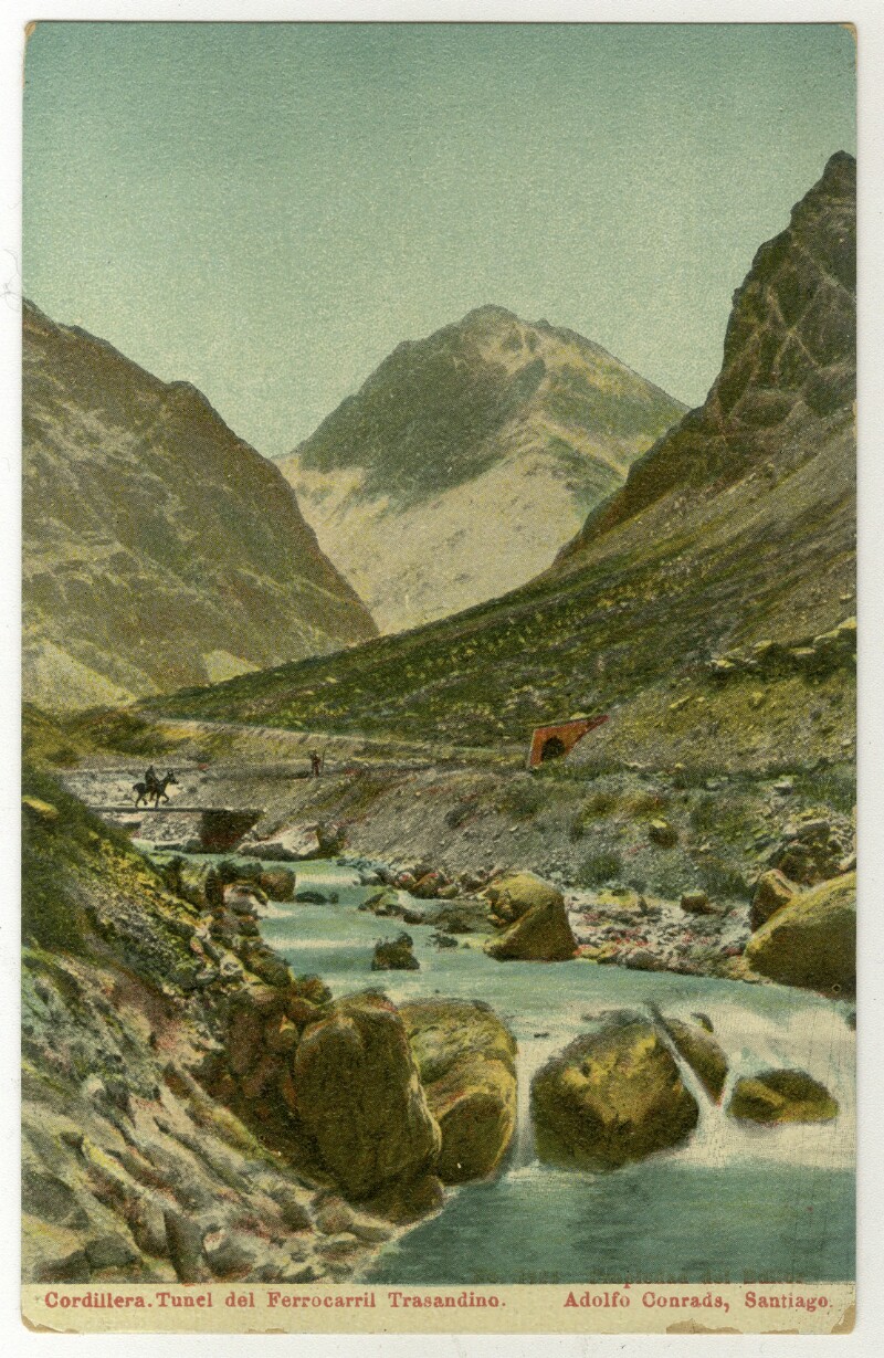 Tarjetas postales - Cordillera de Los Andes - Ferrocarril Trasandino Chileno - Túneles ferroviarios - Ingeniería de ferrocarriles - Ferrocarril Trasandino Argentino - Ingeniería civil - Historia - Descripciones y viajes - Fotografías - Los Andes (Chile)
