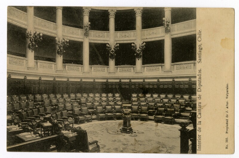 Interior de la Cámara de Diputados. Santiago, Chile : [Antiguo Congreso Nacional] [fotografía] J. Allan.