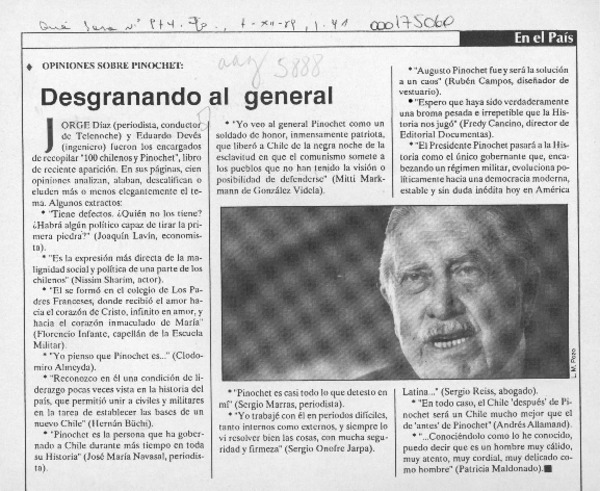 Cien chilenos manifiestan lo que piensan sobre Pinochet [artículo] Manuel Salazar.