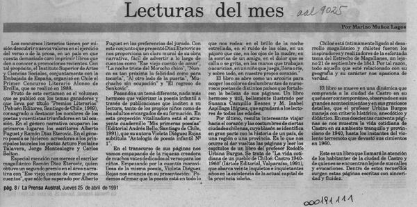 Lecturas del mes [artículo] Marino Muñoz Lagos.