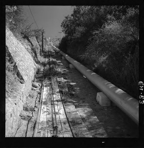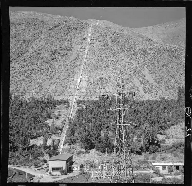 [Funicular para montaje y mantenimiento junto a la tubería de presión. Es uno de los más largos y de gran desnivel construido en el mundo] [fotografía] Luis Ladrón de Guevara.
