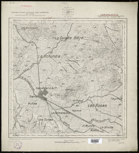Casablanca Departamento de Casablanca [material cartográfico] : Estado Mayor Jeneral del Ejército de Chile, Departamento de Levantamiento.