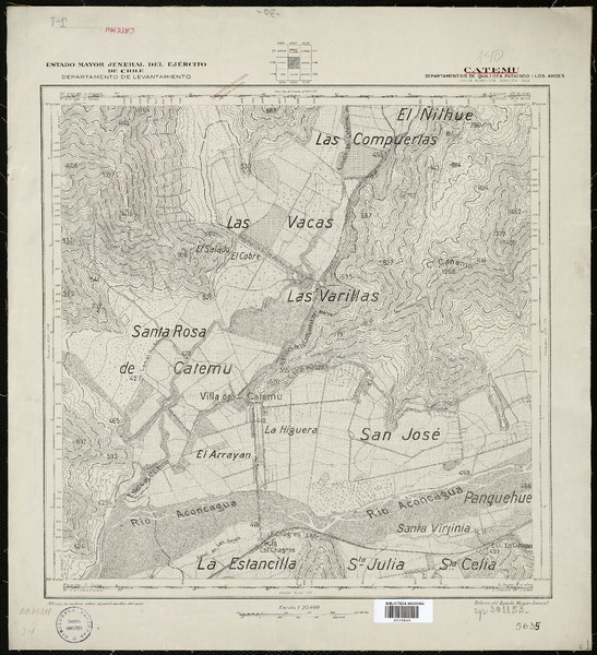 Catemu Departamentos de Quillota, Putaendo i Los Andes [material cartográfico] : Estado Mayor Jeneral del Ejército de Chile, Departamento de Levantamiento.