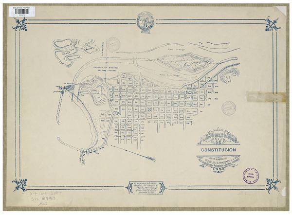 Plano de la ciudad de Constitución con la numeración oficial de las manazanas [material cartográfico] : de la Asociación Chilena de Aseguradores contra Incendio.
