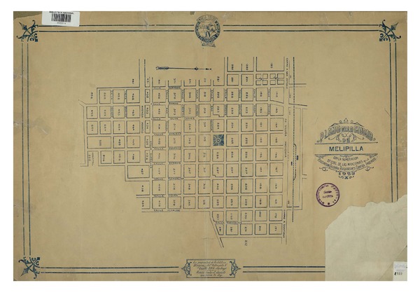 Plano de la ciudad de Melipilla con la numeración oficial de las manzanas [material cartográfico] : de la Asociación Chilena de Aseguradores contra Incendios.