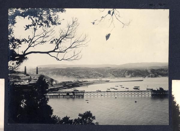 [Vista panorámica de la bahía de Valparaíso después del terremoto en 1906, se observan edificios destruídos, y barcos en el mar] [fotografía].