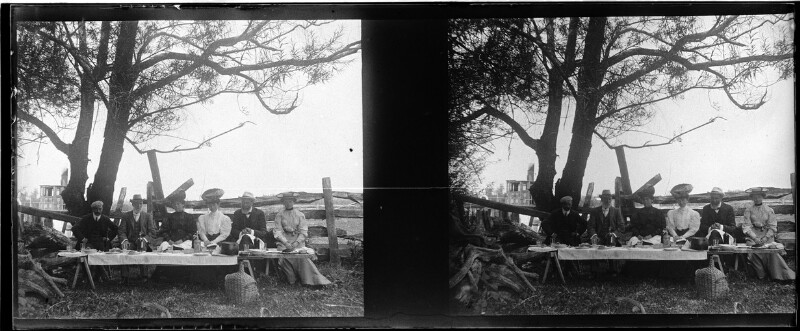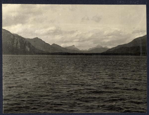 S.E. [Pedro Montt] i comitiva admirando el Estrecho [de Magallanes] [fotografía] Ricardo Jiménez.
