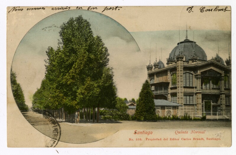 Historia - Diseños y planos - Fotografías - Edificios históricos - Tarjetas postales - Arquitectura del paisaje - Arquitectura de museos - Santiago (Chile : Ciudad) - Edificios, estructuras, etc - Parque Quinta Normal (Santiago, Chile) - Coulomb, A. - Condere, Pierre - Museo ARTEQUIN (Chile) - Exposición Universal de 1889 (París, Francia)
