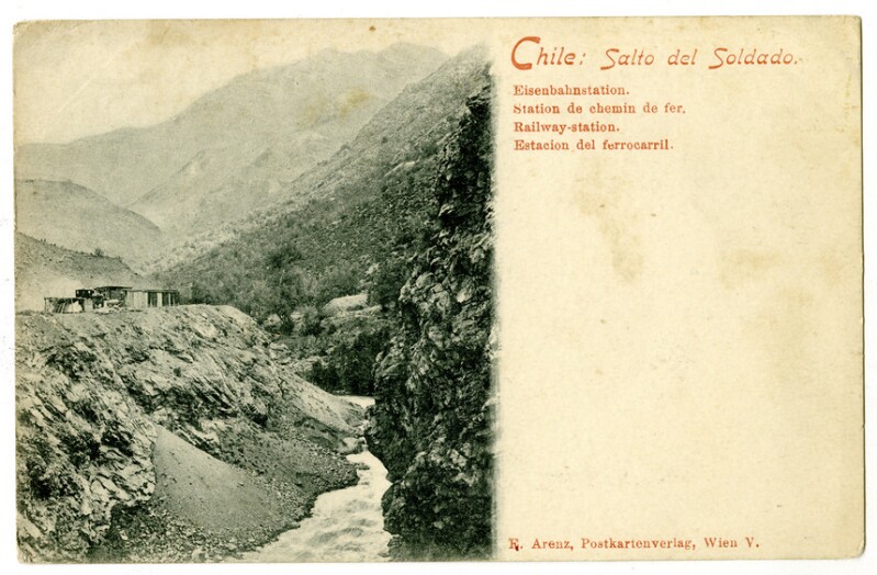 Estaciones de ferrocarril - fotografías - Río Aconcagua (Chile) - Ferrocarril Trasandino Chileno - Salto del Soldado (Chile) - Clark Torres, Mateo - Clark Torres, Juan - Historia - Fotografías - Los Andes (Chile) - Ferrocarriles - Tarjetas postales