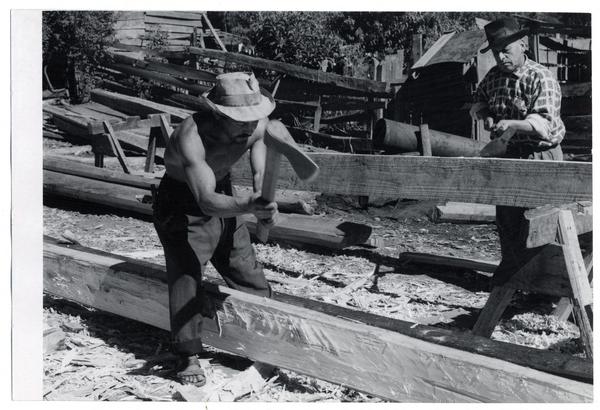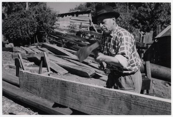 [Carpintero con su azuela, trabaja la madera] [fotografía] Domingo Ulloa.