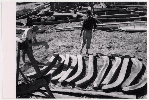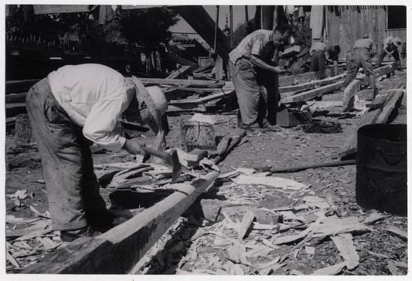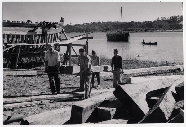 [Astilleros del Maule; carpinteros de caleta en labores de contrucción] [fotografía] Domingo Ulloa