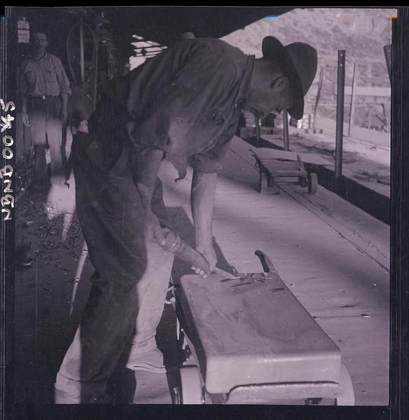 [Trabajador en labores de construcción en el astillero] [fotografía] Domingo Ulloa.