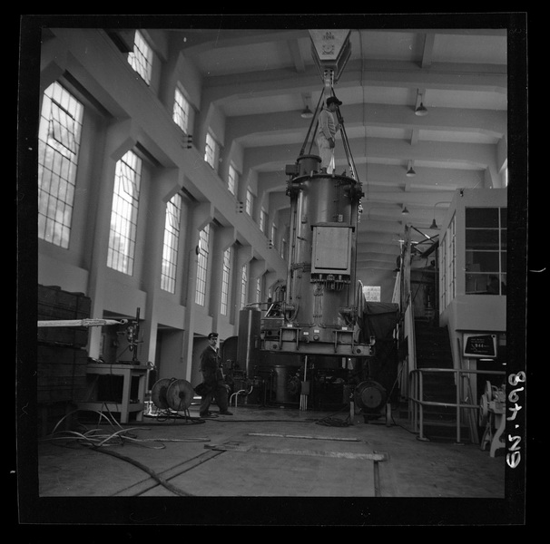 Transformadores en el patio de Alta Tensión, donde la energía generada de 6.900 voltios es elevada a 66.000 voltios [fotografía] Luis Ladrón de Guevara.