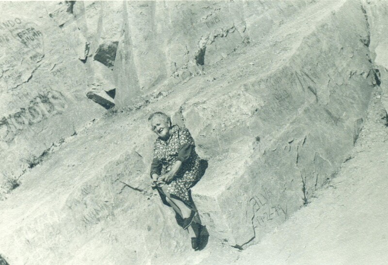[Berta Bugueño Lizama en una piscina de cerro Blanco] [Fotografía].