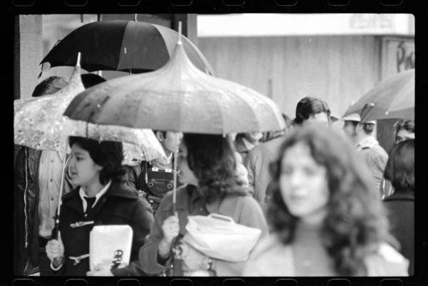 Traseúntes - Mujeres - Hombres - Allende Gossens, Salvador - Fotografías - Lolas y Lolos - Avenida Providencia(Santiago, Chile) - Lluvia