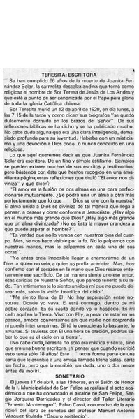 Sor Teresa de Los Andes está próxima a los altares [artículo] Carlos Ruiz Zaldívar.