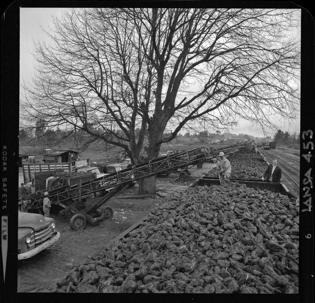 [Iansa (Chile) : Planta Llanquihue; cosecha de remolacha azucarera] [fotografía] Luis Ladrón de Guevara.
