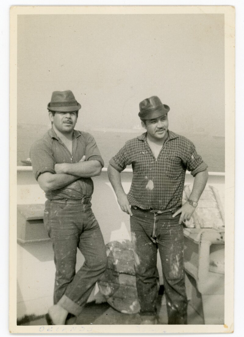 [Hombres sobre la cubierta de un barco] [Fotografía].