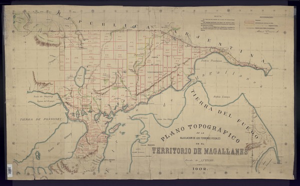 Plano topográfico de la hijuelación de los terrenos fiscales en el territorio de Magallanes [material cartográfico].
