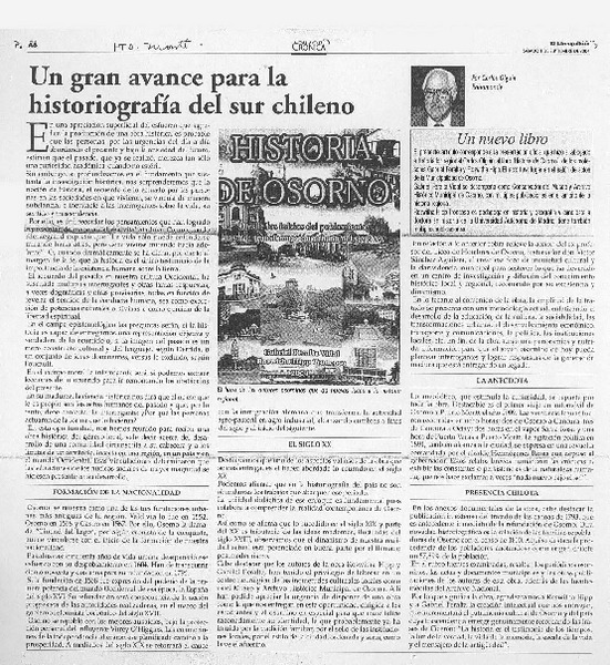 Un Gran avance para la historiografía del sur chileno [artículo]Carlos Olguín Bahamonde.