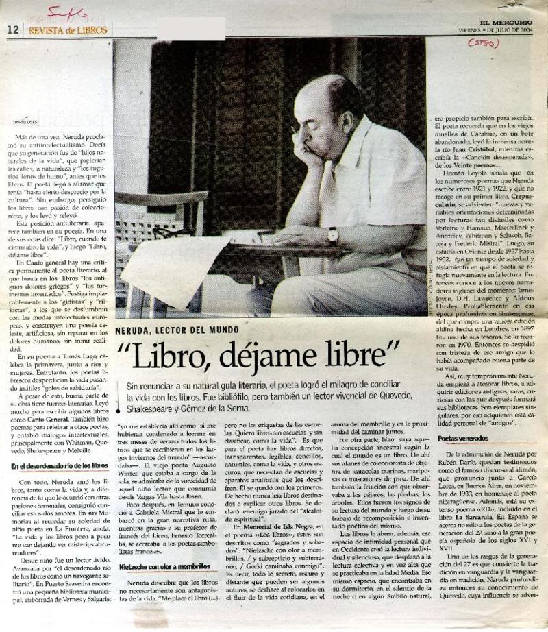 "Libro, déjame libre" Neruda, lector del mundo [artículo] : Dario Oses.
