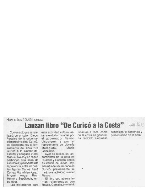 Presentan "De Curicó a la costa", de Víctor Manuel Avilés [artículo].