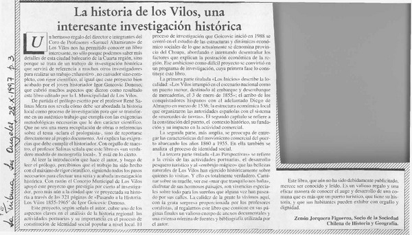 La historia de Los Vilos, una interesante investigación histórica [artículo] Zenón Jorquera Figueroa.
