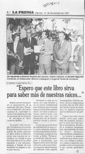 "Espero que este libro sirva para saber más de nuestras raíces --" [artículo].