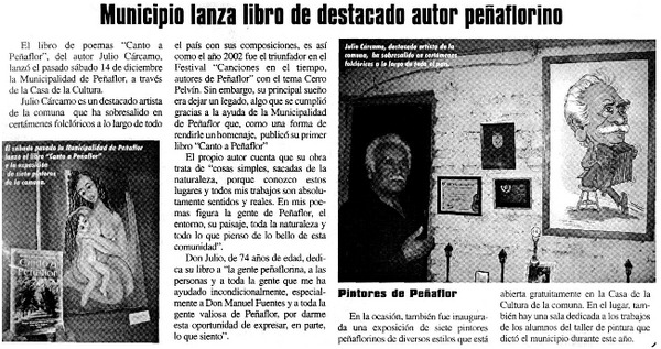 Municipio lanza libro de destacado autor peñaflorino. [artículo]