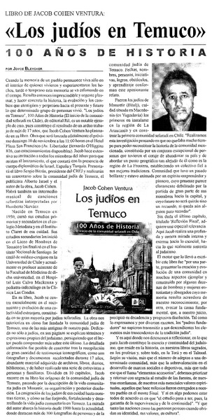 Los judíos en Temuco" : 100 años de historia [artículo] Joyce Bleycher.