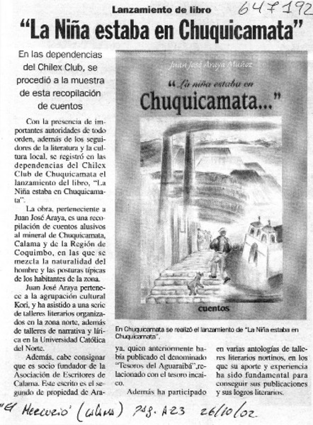 Autores chilenos - Araya Muñoz, Juan José - Niña estaba en Chuquicamata