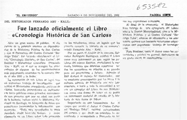 Autores chilenos - Abu-Kalil S., Fernando - Cronología histórica de San Carlos
