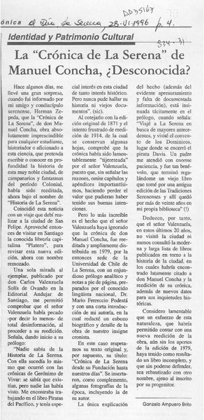 La "Crónica de La Serena" de Manuel Concha, desconocida? [artículo] Gonzalo Ampuero Brito.