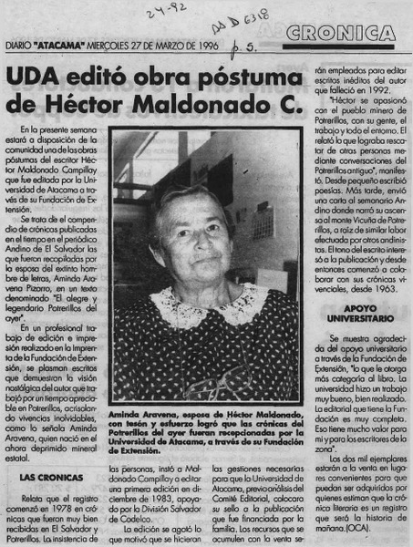 UDA editó obra póstuma de Héctor Maldonado C. [artículo].